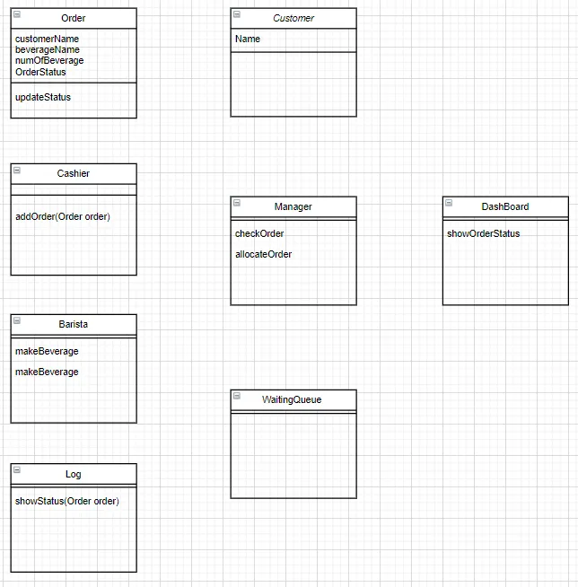 → WaitingQueue에 있으면 대기, Barista가 제작 시작하면 제작 중, 완료하면 완료