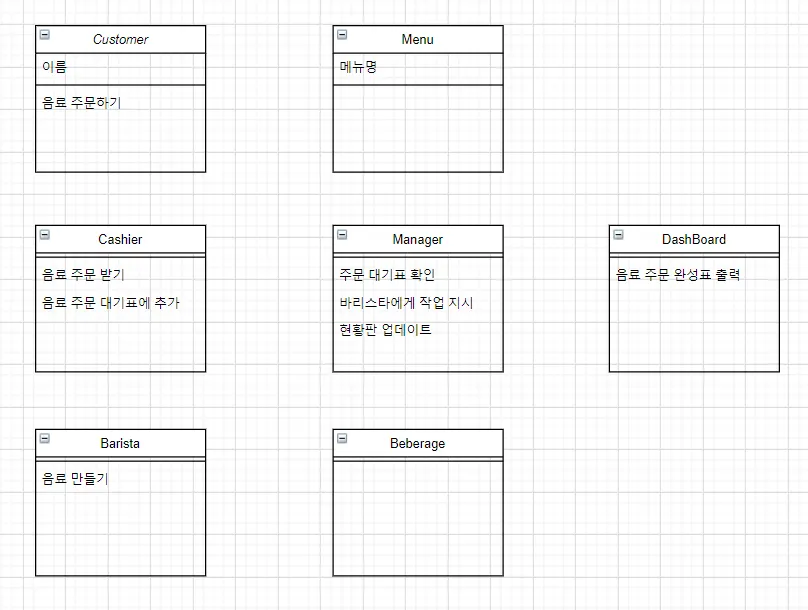 → 객체 책임: Order에 따라 음료 제작(한 바리스타는 동시에 2개의 음료 제작 가능)