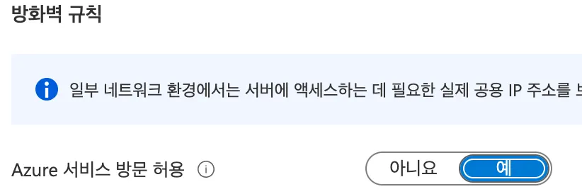 → Azure 서비스 방문허용을 ‘예'로 선택할 것