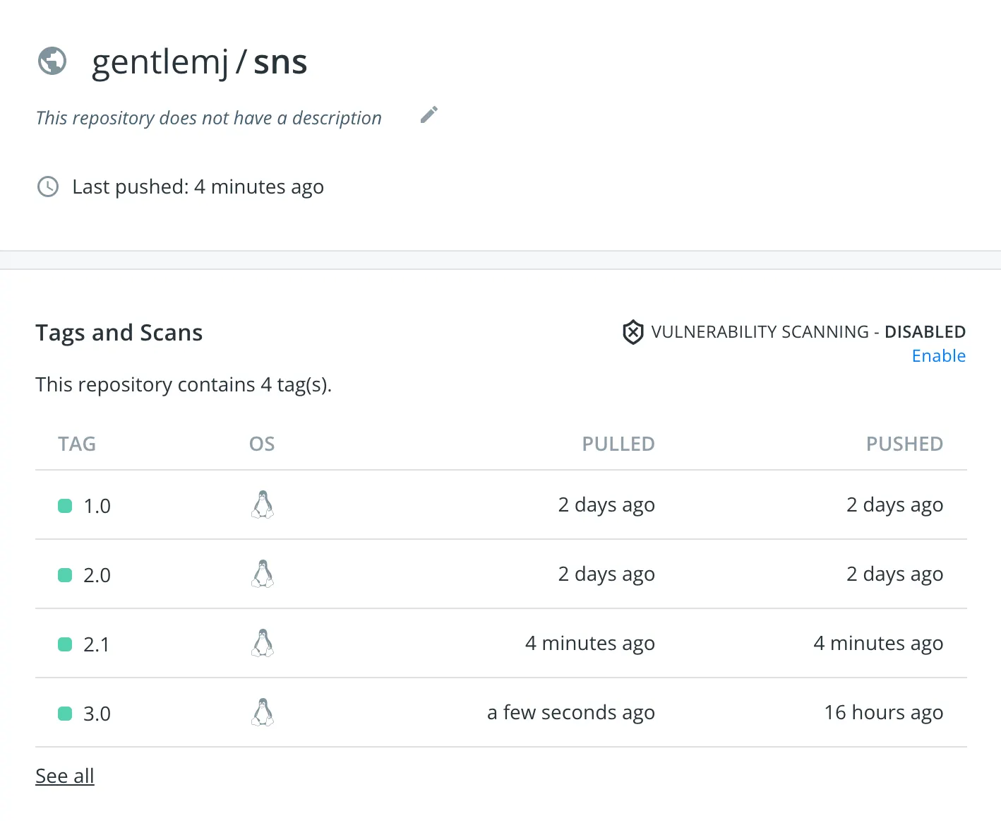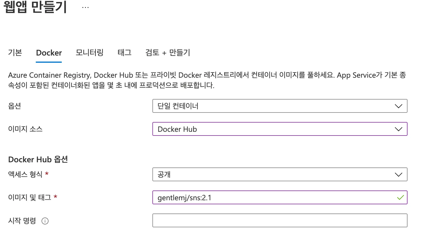 → Docker Hub 내 push된 이미지 정보를 참고하여 이미지 및 태그란 기입