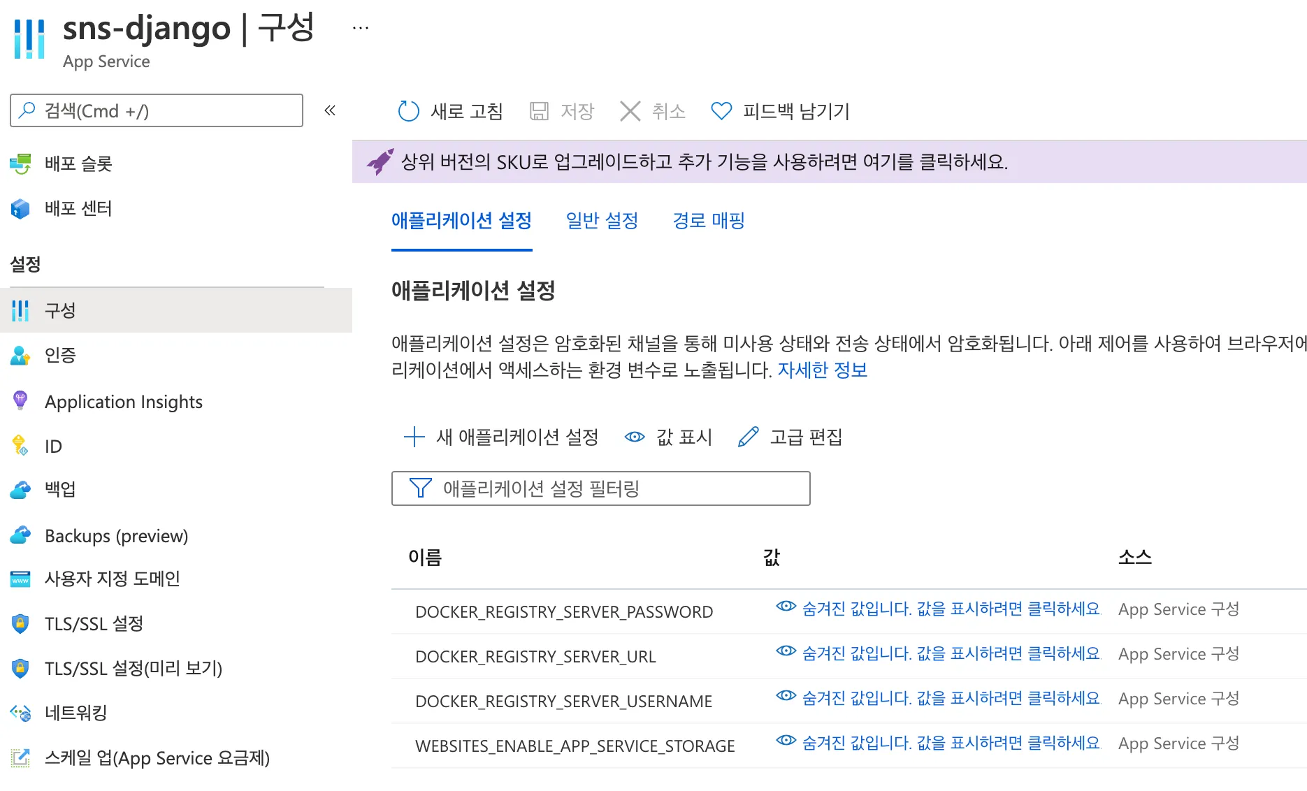 ALLOWED HOST 값 변경(localhost → azure app service)
