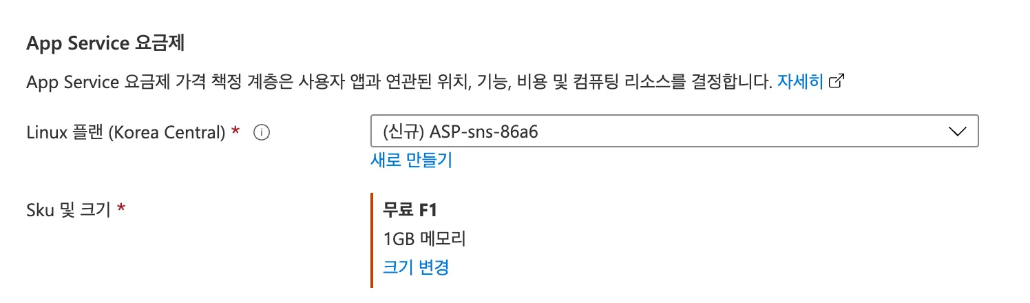 → 테스트용 인스턴스의 요금제는 ‘크기 변경'을 통해 무료 F1으로 변경 권장(비용 절감)