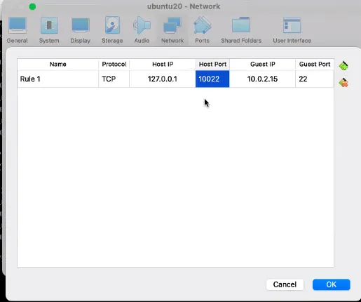 local pc에서 vm pc의 서버로 원격접속(SSH)할 때, portForwarding에 작성한 호스트 ip와 port를 입력함