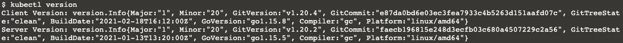 : Client Version 확인은 kubectl version, 반면 Server Version 확인의 경우 마스터 노드의 Kubernetes version