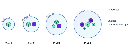 하나의 일을 하기 위해 묶여진 컨테이너 그룹입니다. 대부분의 경우 하나의 파드는 하나의 컨테이너로 구성됩니다. 볼륨은 파드에서 지속 관리되어야 하는 데이터를 저장하는 곳입니다.