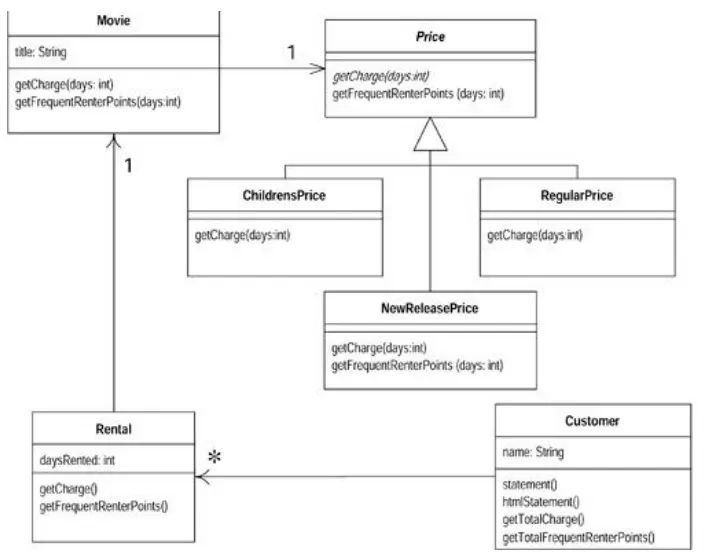 โ getCharge, getFrequentRenterPoints ๋ ๋ฉ์๋์ ๋ํด ๋คํ์ฑ์ ํ์ฉํ์ฌ Price class ๋ด ์์ ํด๋์ค์ ํ์ ๋ฉ์๋๋ก ๋ถ๋ฆฌ