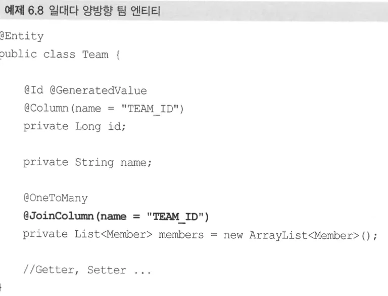외래키를 가지고 있는 객체는 외래키의 관리 주체 이상의 의미를 부여하면 안된다. 예를 들어, 비지니스 로직을 고려하여 외래키의 위치를 결정하면 안된다. 외래키의 위치를 특정 객체에 설정하는 것이 특정 객체가 다른 객체 보다 중요하다는 오해를 낳을 수 있기 때문이다. N:1, 1:N 관계에서 반드시 N에 해당하는 객체에 외래키를 설정해야 한다. 6.2.1 참고