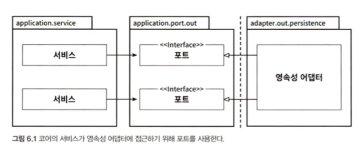 클린 아키첵처에서는 단일책임원칙(SRP)과 의존성역전원칙(DIP)의 관점에서 계층을 분리합니다. 다시 말해, 오직 단 하나의 이유만으로 객체를 변경(SRP)하기 위해 계층 간 의존관계를 변경하는 것이 클린 아키텍처의 핵심입니다.예를 들어, 도메인 계층에는 도메인 객체와 레파지토리의 인터페이스를 정의하고 영속성 계층에는 앞의 레파지토리의 구현체를 정의하는 방향으로 의존관계를 역전할 수 있습니다. 정리하자면 어플리케이션 계층은 인터페이스인 포트에 의존합니다. 포트의 구현체인 어댑터는 어플리케이션과 직접적인 의존 관계를 맺지 않습니다.