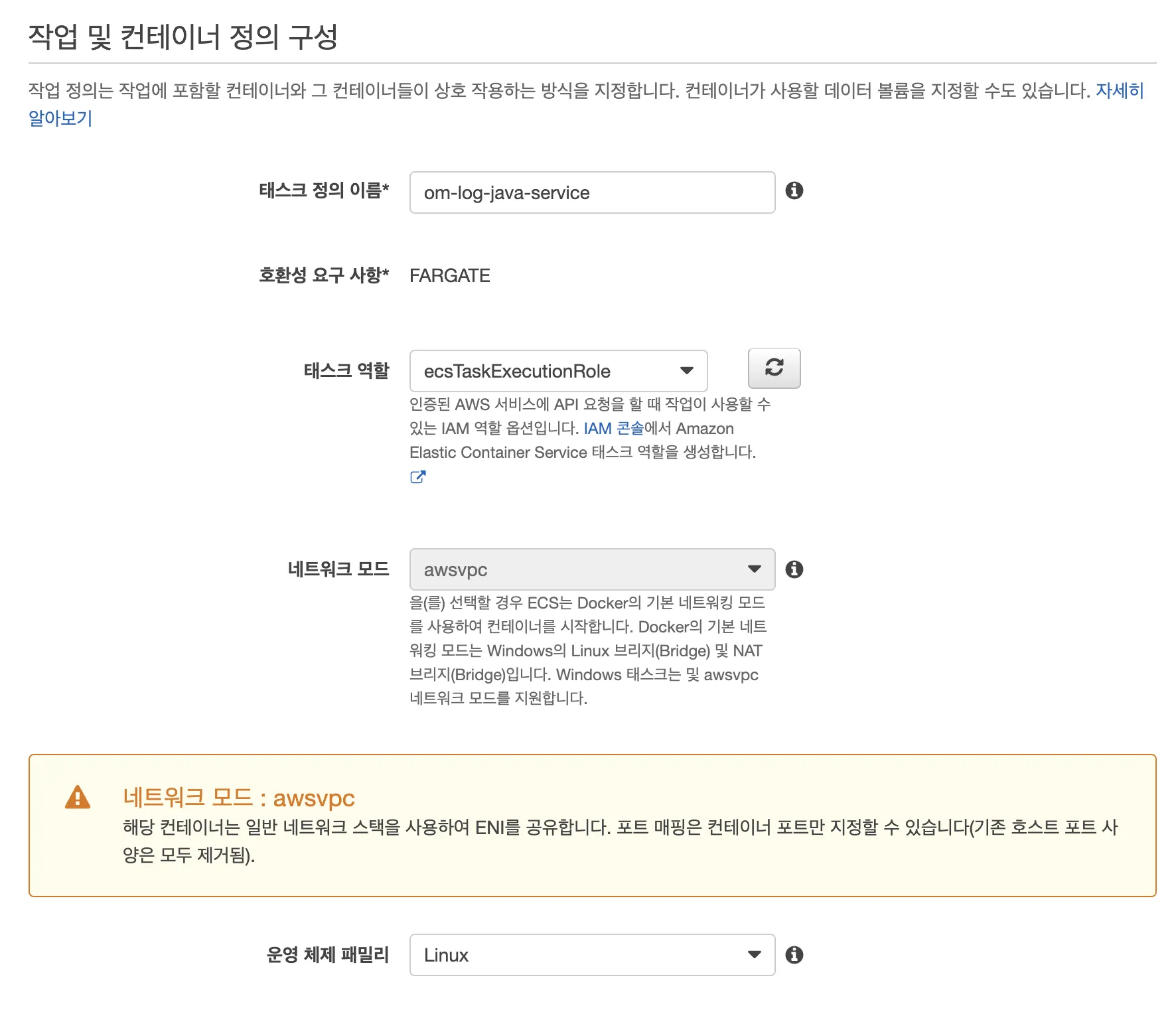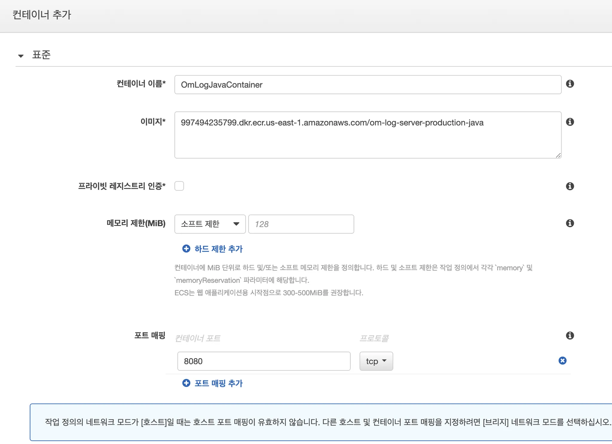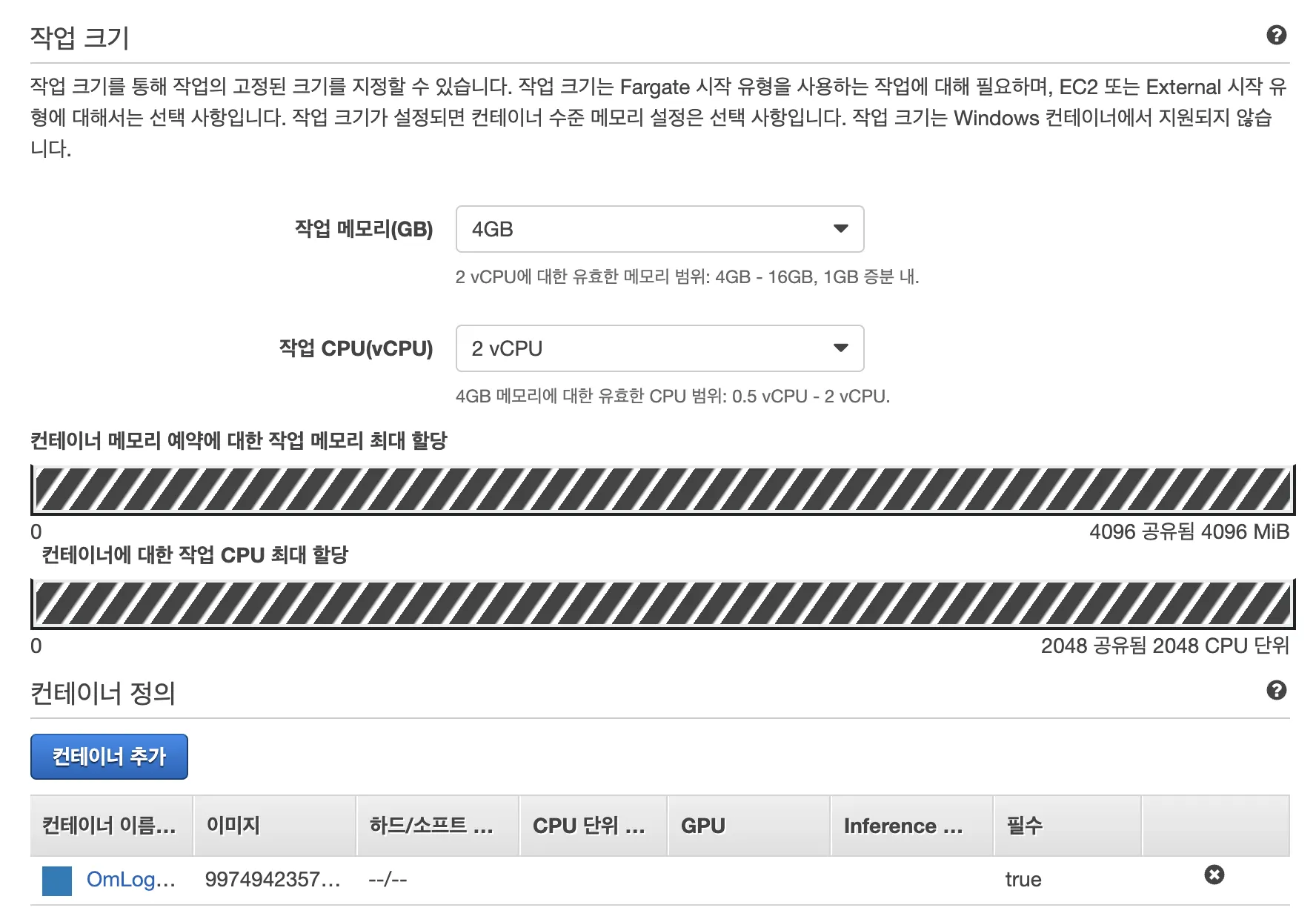 참고) 작업 정의 중 컨테이너 추가 이미지