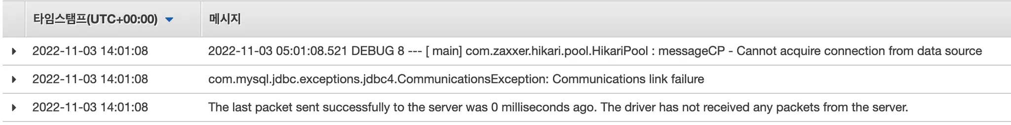이슈 1) DB 보안그룹 내 WAS 트래픽 미설정에 따른 DB 커넥션 실패 이슈