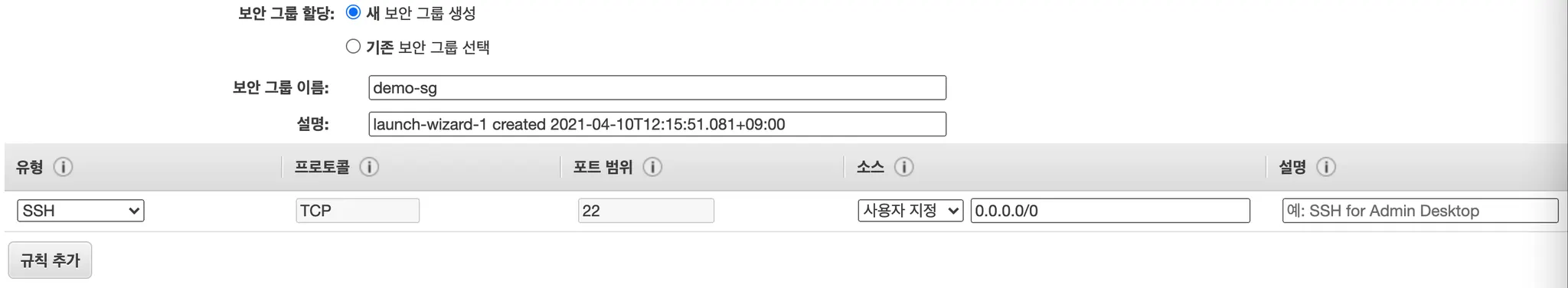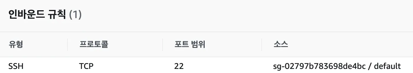 기존 보안 그룹의 정책은 default 였는데, 소스가 anywhere가 아니라 특정 보안 그룹으로 지정되었음