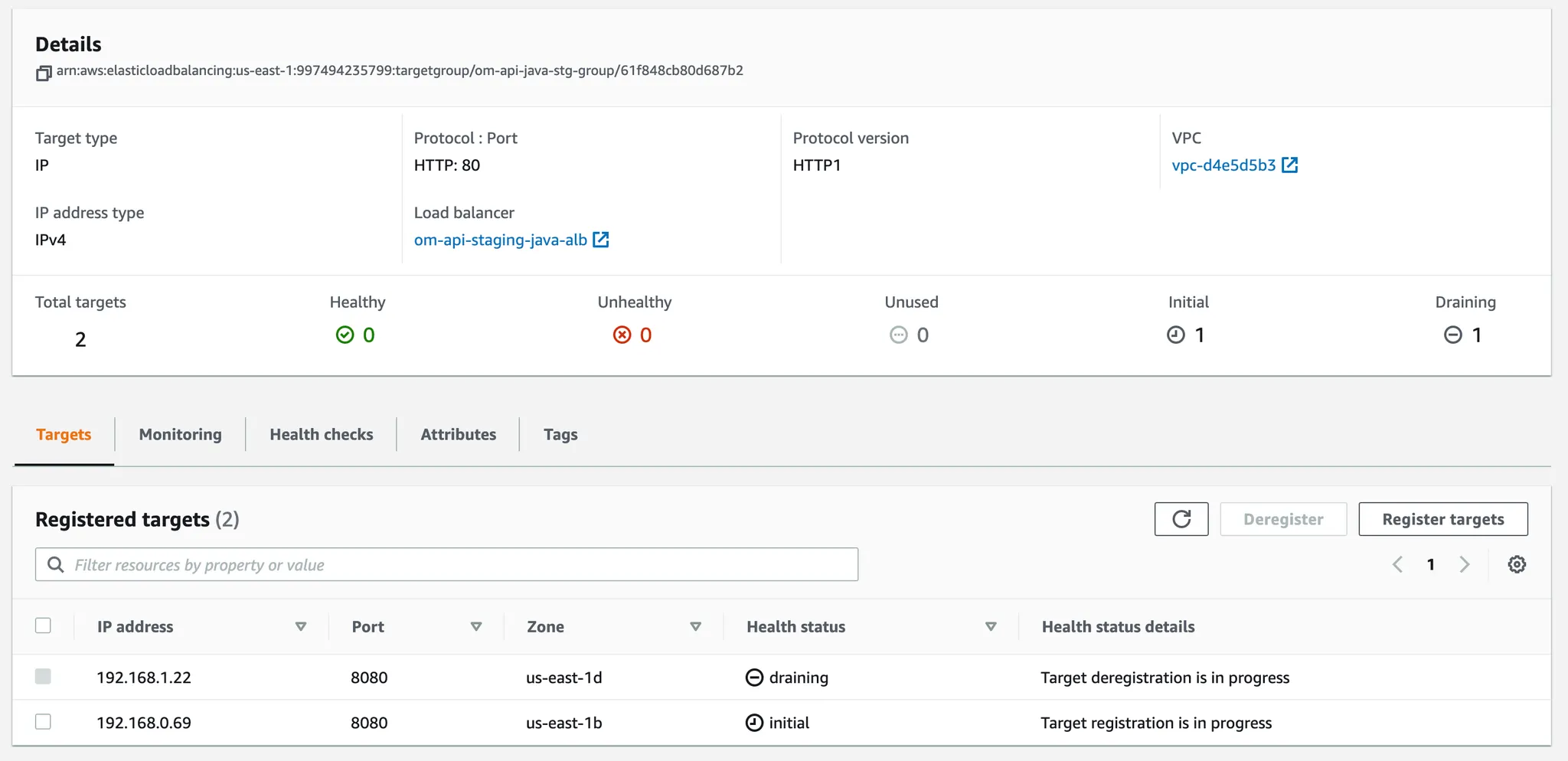 ECS Service를 새로 생성할 경우, 연결된 Load Balancer의 Health Status 확인 필요