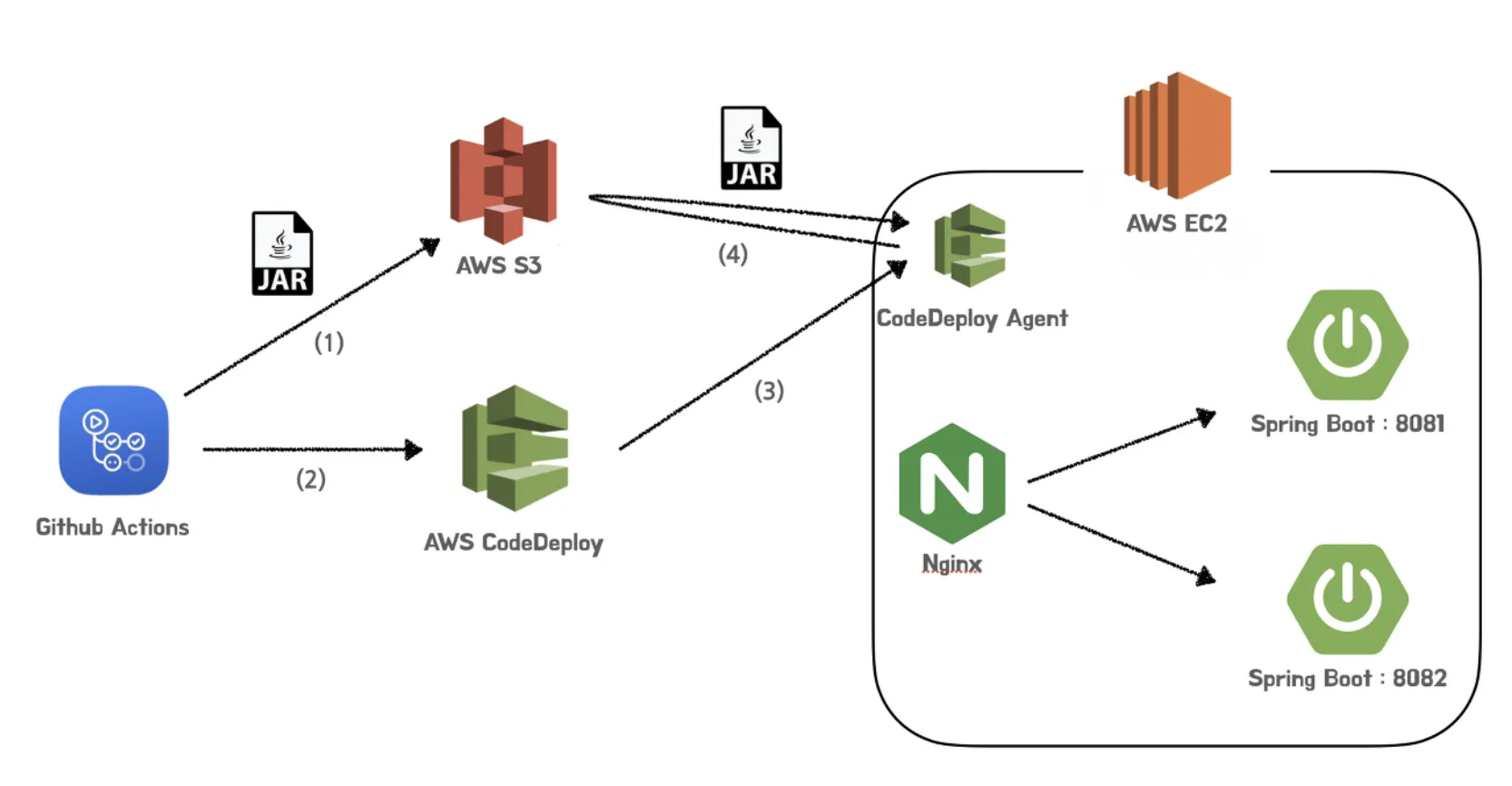 → CodeDeploy Agent는 S3에서 jar파일을 받아서 스크립트에 따라 배포 진행