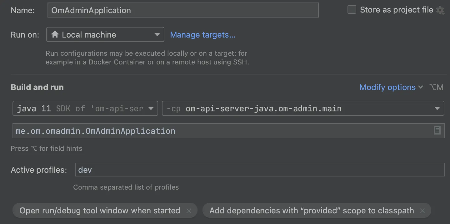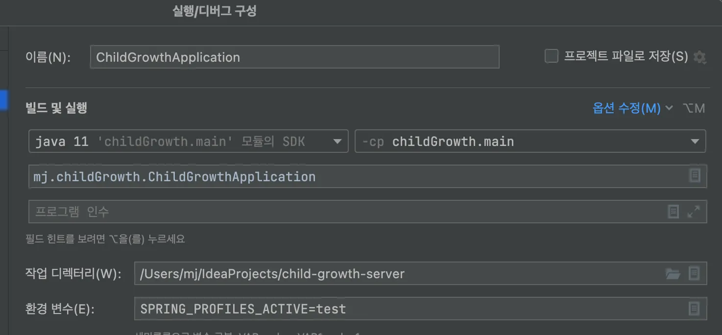 ex) 환경설정 파일이 application-dev.yml 인 경우