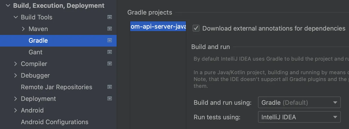 ex) ‘Run tests using’ 값을 Gradle → IntelliJ IDEA로 수정 후 정상