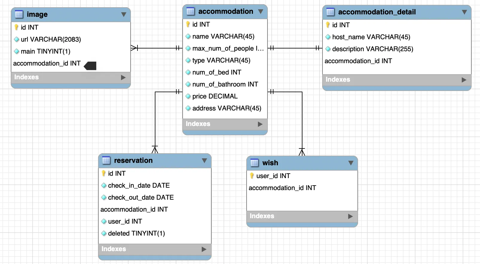 → 검색 조건 2, 날짜 검색: reservation의 check_in_date와 check_out_date와 비교해서 예약 가능한 숙소 중 선택